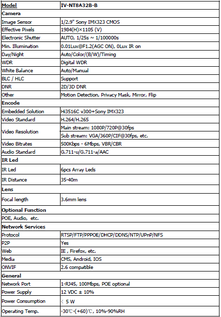 , Optional customization Lens/Audio/Alarm/Storage/POE, etc.